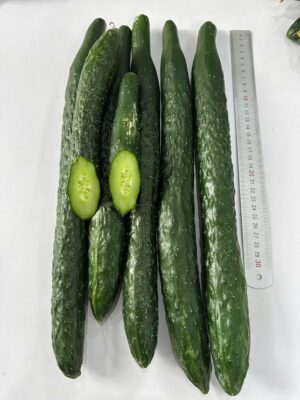 - Đặc tính giống: Kháng bệnh tốt, thích nghi rộng, trái màu xanh đậm, vỏ có gai, thịt giòn ngọt, thịt rắn dày, đặc biệt hạt rất mềm và ít; trái dài 20–30 cm, hơi thon ở 2 đầu, nặng TB: 150–200 gram.